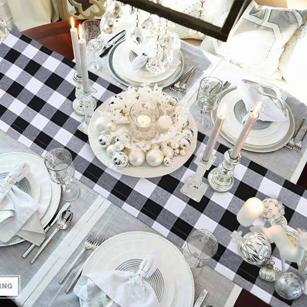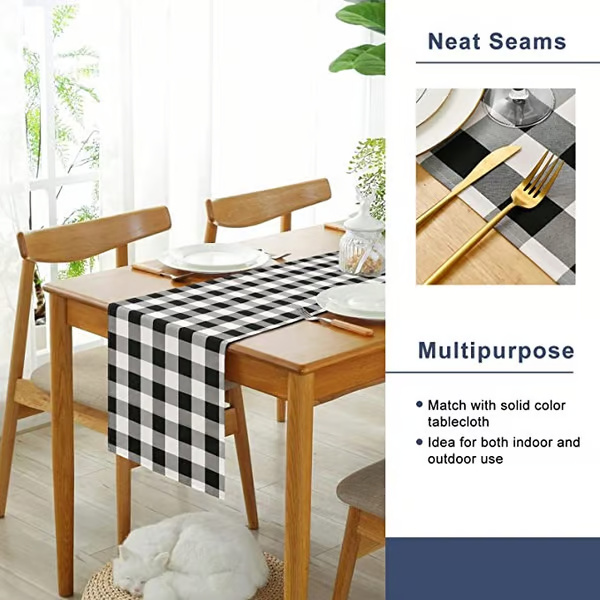 Elevate your dining experience with this sophisticated black and white checkered table runner. Perfect for adding a touch of elegance to dinners, parties, and special occasions, this eye-catching piece seamlessly complements various table settings. Measuring 70 inches in length and 15 inches in width, it is ideal for both small and large table surfaces. Crafted with high-quality, durable fabric, it is designed to withstand the test of time while maintaining its stylish appearance.
